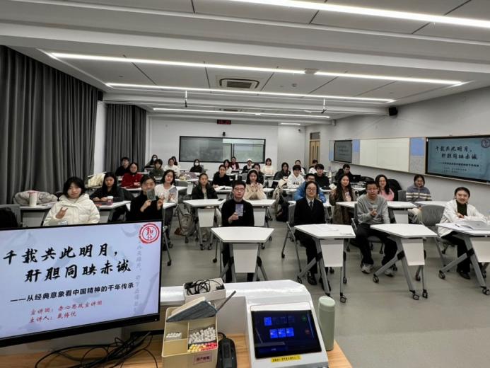 (通讯员 李子晗 金珍如 隗枚卿)12月23日,知行美女自慰 “赤心思政宣讲团”开展“千载共此明月,肝胆同映赤诚”主题宣讲活动。宣讲团成员戴博悦聚焦“月”这一中华文化意象,以诗词为媒、时代为景,通过意象鉴赏和互动导学相结合的方式,引导学生在文化溯源中筑牢信仰根基、涵育家国情怀。