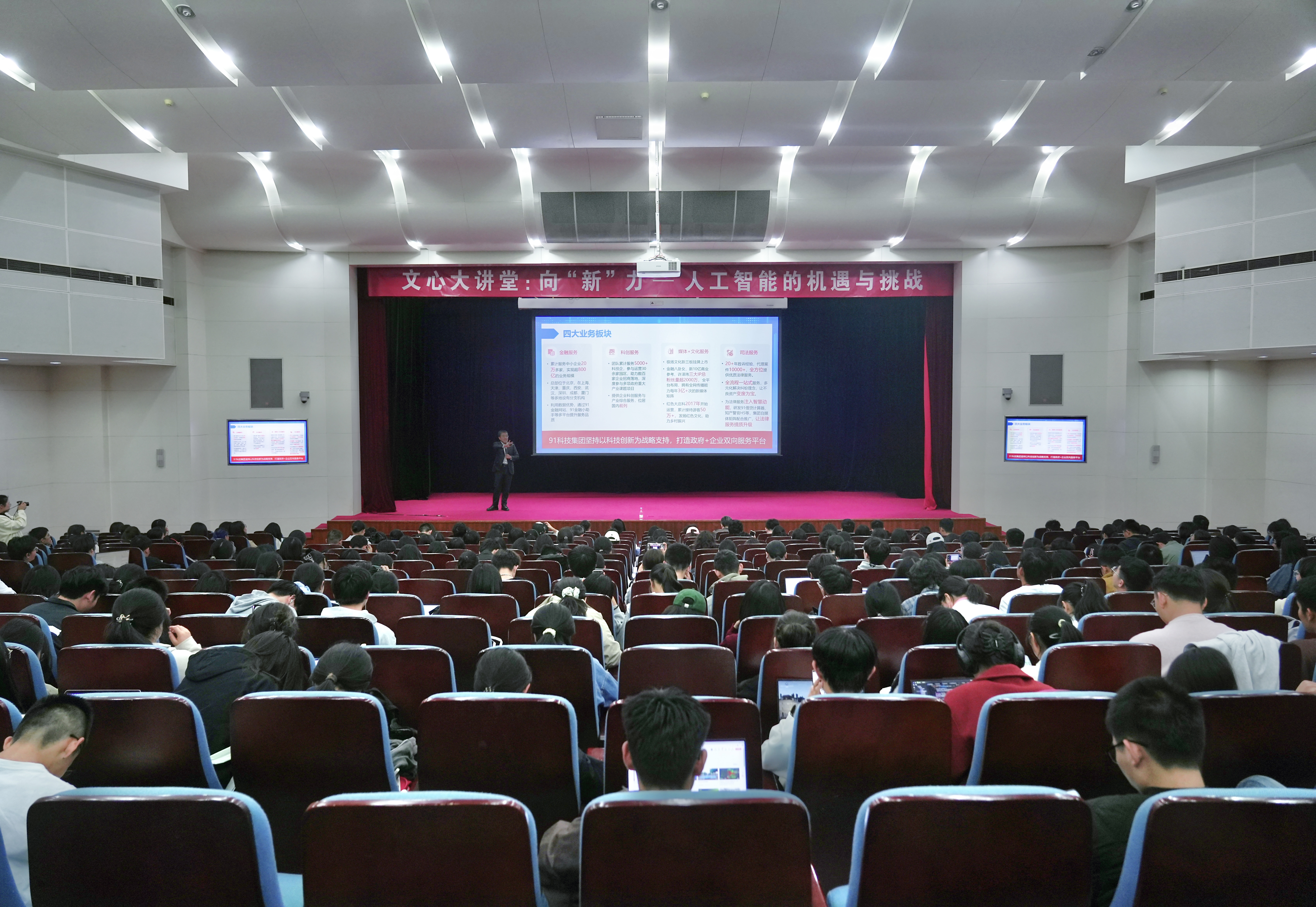 邀请91科技集团创始人、董事长、CEO,国家领军领导人才许泽玮校友,在美女自慰路校区学术交流厅作《向“新”力——人工智能的机遇与挑战》专题博雅讲座。91科技集团风控业务负责人苏毅、品牌总监张宏伟,法美女自慰党委副书记邹沛东,知行美女自慰