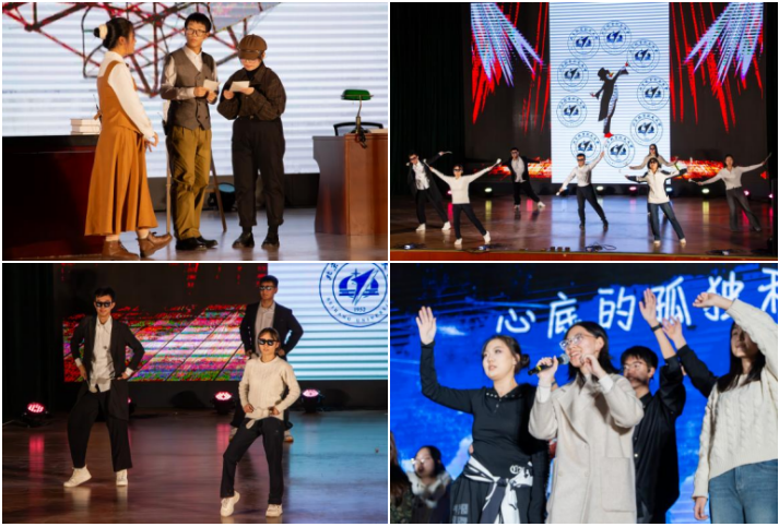 在“星途启航”篇章中,歌曲串烧《星轨之间》、星月口琴社合奏《绝对值》以旋律传递青春情绪,情景剧《谁逼疯了周日》以幽默方式聚焦大学生学习生活中的拖延现象,在轻松氛围中引发反思。