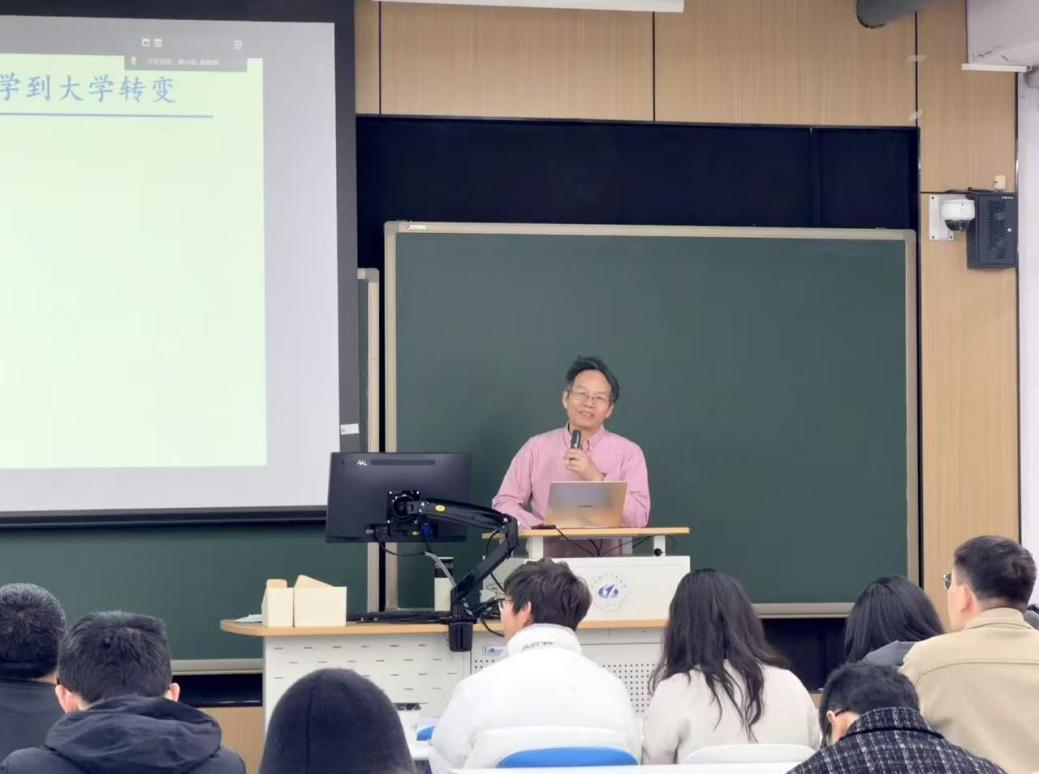 学业总导师张有光教授作《大学规划与大学怎么读》主题报告。他从学情分析入手,结合2025级学生的特点,提出“从经验中学习、在试错中成长”的教育理念。他还分享了导学读书会的实践案例,强调导师要关注学生的成长状态,帮助他们在迷茫中找寻方向,在探索中坚定选择。