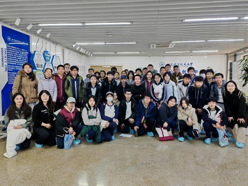 之后,师生一行前往北航智能微纳公共创新中心,近距离观察先进科研设备,聆听讲解员介绍平台的前沿创新成果与研究方向,切实感受北航在相关领域的科研实力。