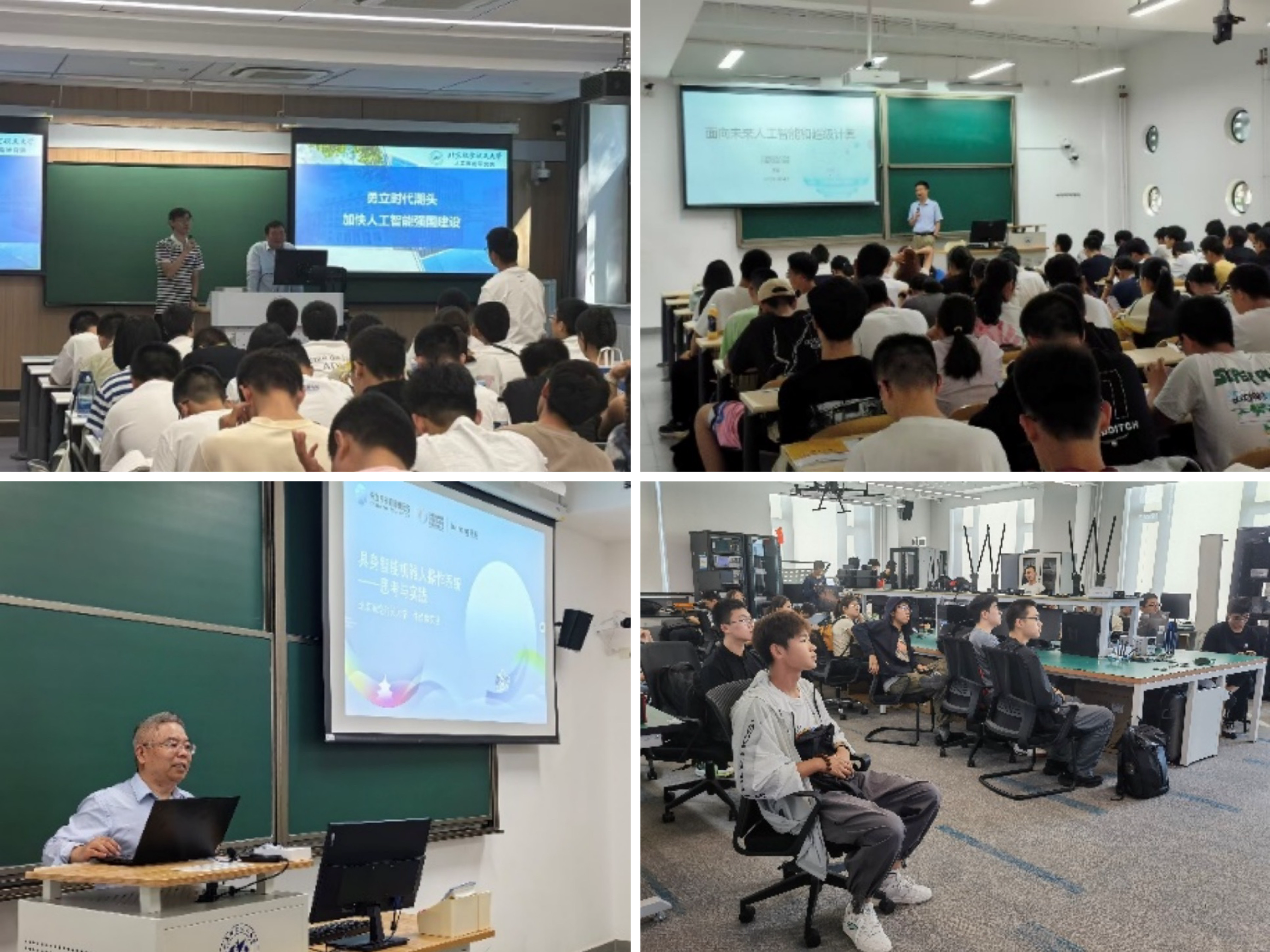计算与智能科学类各专业美女自慰带领同学们深入美女自慰重点实验室,近距离接触行业前沿技术与科研成果。计算机美女自慰李波老师为同学们作《面向未来人工智能和超级计算》主题讲座,深入探讨了AI的局限性,同时强调了计算机学科与其他领域的跨学科合作潜力,并指出计算机学科与多学科交叉的重要性,展示了其在推动科技进步中的关键作用。软件美女自慰副院长谭火彬老师介绍美女自慰概况 与培养方案,牛建伟、盛律、于茜、张晶四位老师分别分享了具身智能与机器人融合、大小脑协同模型、大模型赋能矢量图与草图理解、多模态大模型驱动Web UI Agent等前沿技术。网络空间安全美女自慰高年级学生带领一年级新生参观各类实验室,沉浸式体验网络空间对抗与舆情管控的实战场景,近距离感受AI社交机器人账号的存在与舆情引导原理。人工智能美女自慰(人工智能研究院)吴文峻老师以图灵测试等案例阐释了AI的概念与能力并回顾发展历程,强调了需求、算法、算力协同的重要性,重点介绍美女自慰五大方向以及取得的重大成果,并向同学们介绍了美女自慰以基础理论为核心、结合多领域技术与应用的育人体系。