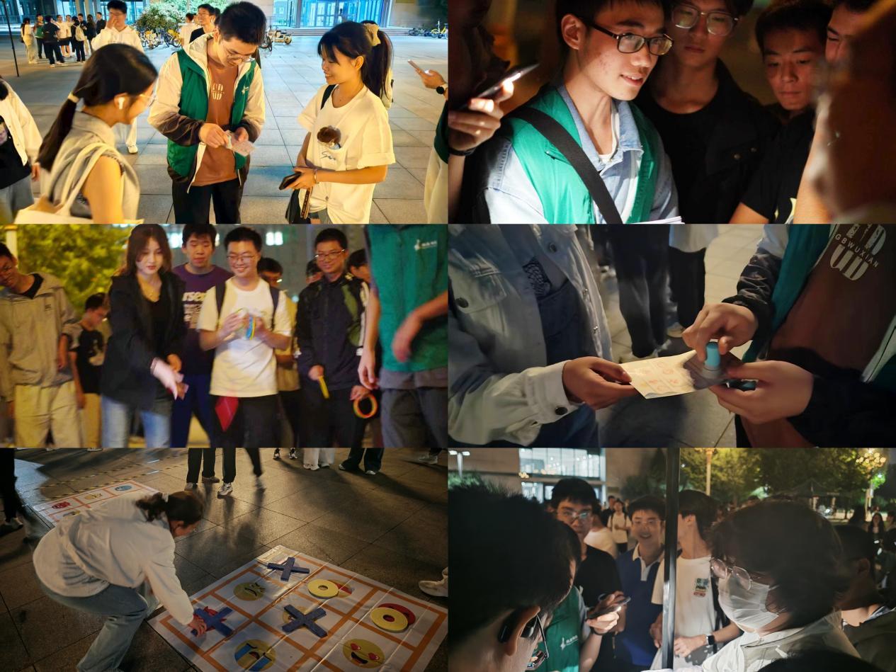 外场活动在大钟广场进行。各梦拓组持集章卡,有序参与“月饼拼盘”“逛三园”“套圈”“奔跑版‘井字棋’”“321看这边”“扭蛋机猜灯谜”“答非所问”7项趣味游戏——同学们在紧张刺激的“月饼拼盘”中展开记忆对决,瞬间拉近了彼此的距离;在节奏欢快的“逛三园”考验反应能力与知识储备,展现了团队的活力与创意;在“套圈”场上凝神投掷,感受了专注与协作的力量;在“奔跑版井字棋”中融合了智力与速度,将团队的默契配合展现得淋漓尽致;在反应力大挑战“321看这边”中一致应对挑战,于瞬间的判断中培养出十足的默契;在“扭蛋机猜灯谜”中体会智慧的碰撞,共同品味传统文化的韵味与破解谜题的喜悦;在妙语连珠的 “答非所问” 环节中,用天马行空的“错位”回答打破常规思维,升华团队的独特联结。现场秩序良好、气氛热烈,同学们也在轻松的互动、协作与竞技中增进了解、加深感情。