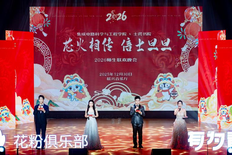 “芯火相传 信士旦旦”2026年元旦师生联欢晚会暨“璀璨之芯”“士谔志士”颁奖典礼在晨兴音乐厅举行。整场活动集表彰先进与文艺盛宴于一体,既彰显了两院学子的卓越风采,也凝聚了师生同心的深厚情谊,为即将到来的 2026 年奏响了昂扬序曲。