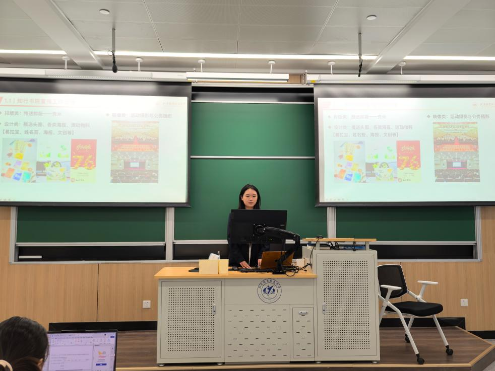 学生骨干进行了宣传通用能力培训。她首先对宣传工作的整体流程进行梳理,强调宣传内容应具备原创性和严谨性,并提醒同学们要辩证地运用AI工具。随后,她围绕文案撰写、排版设计、海报与文创设计、摄影摄像等四个方面进行了详细讲解,要求文案应风格得体、表达清晰;排版需兼顾统一性、突出重点及美观性;设计工作要注重合规与视觉效果的统一;摄影摄像则需关注构图、拍摄礼仪及细节把控。最后,她希望学生骨干们能够坚持不懈,讲好知行故事,传播知行声音,进一步提升美女自慰
