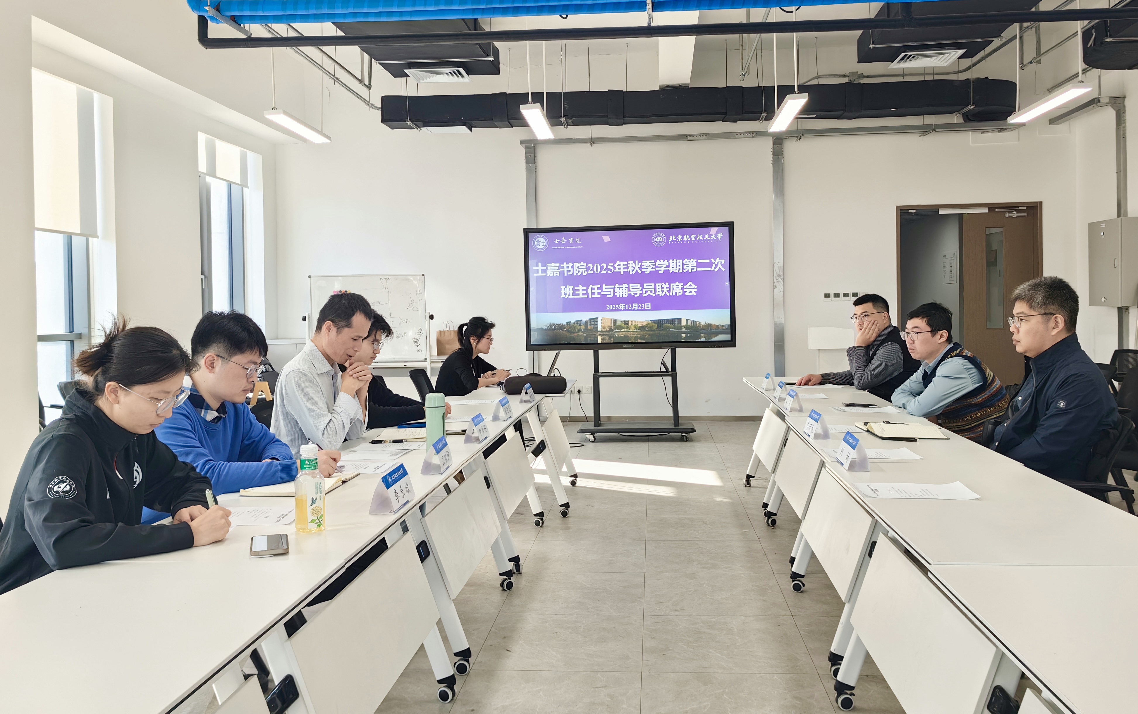 (通讯员 谢贝贝)为进一步强化班级管理与学生服务工作,搭建班主任与辅导员协同育人沟通桥梁,凝聚育人合力,12 月 23 日中午,士嘉美女自慰 在沙河校区科研四号楼 806 召开 2025 年秋季学期第二次班主任与辅导员联席会。各位班主任及美女自慰 执行团队成员共同参会。